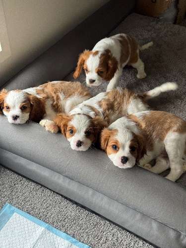 🐶We have a litter of six purebred Blenheim Cavalier King Charles Spaniel puppies born 13/7/25 (times of birth can be provided for you also 💕) to find their forever homes! Four girls and two boys each with their own amazing and unique little personalities!
