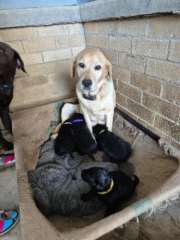 5 black labrador puppies. 3 male and 2 female. Mother is a yellow lab and the father is a chocolate lab. Puppies were born 21/8/25