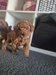 Pups are being raised in a family environment, they have a non shedding , beautiful red curl, raised inside amongst house hold noises , children , babies and other animals . They have been introduced to birds and cats .We are exposing them daily to everyday noises such as sirens , knocking , horn beeps to ensure well social , and confident pups.